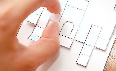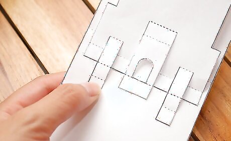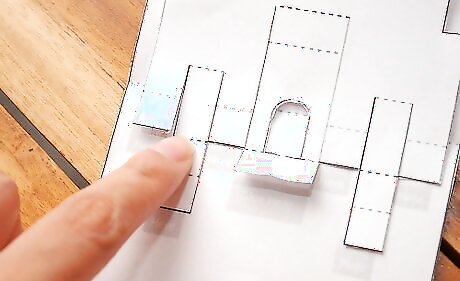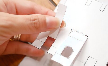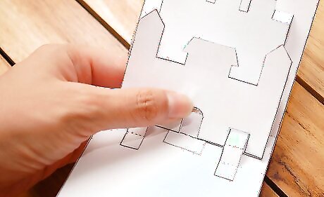 Fold up the first tab at the bottom of your main castle pop up piece. Crease with your finger. Then put the tab back to its original position.