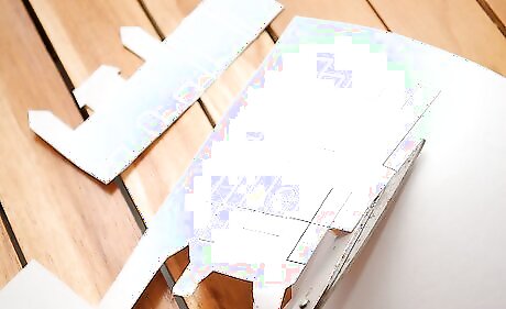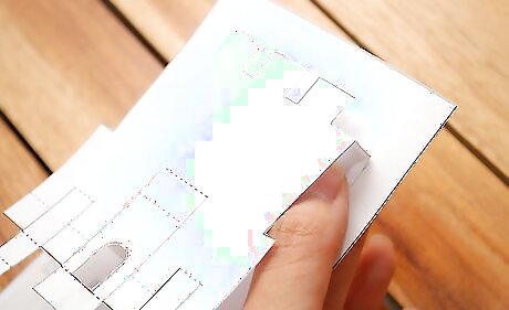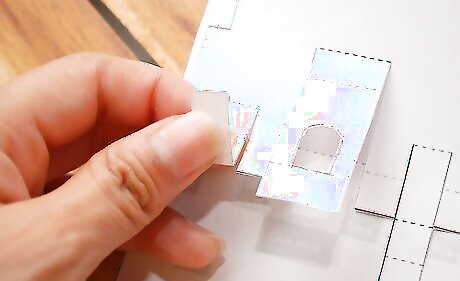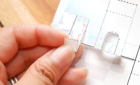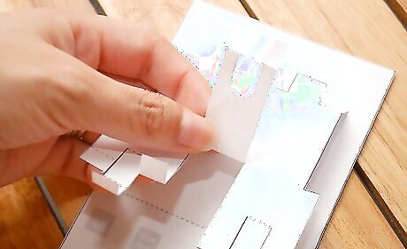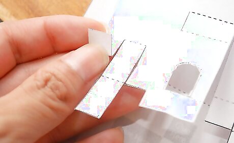 Align the bottom tabs of your main pop-up piece with the matching grey areas. Press firmly and be sure let the glue dry.