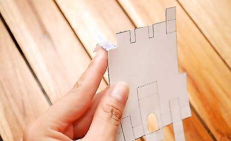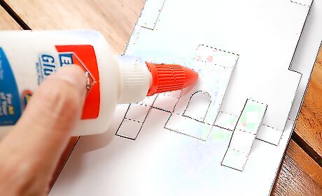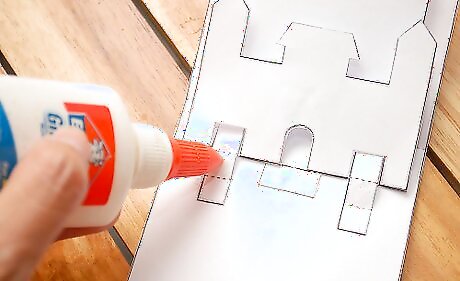 Apply a small amount of glue to the side tabs of the main castle piece.