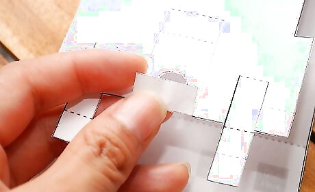 Place a small amount of glue on the grey areas marked "glue here."