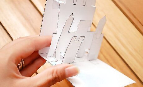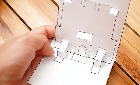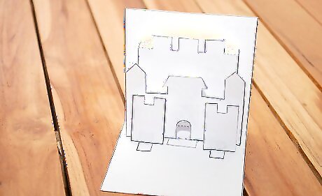 Place fingers under the castle piece and raise the piece forward. Then fold the card in half and press firmly. Open the card.