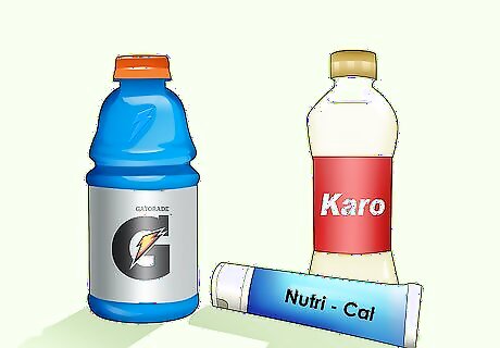 Have food and water. In planning for all situations, you should account for emergencies where your cat needs food or water or other nutritional support. Pack water but also a variety of quick-acting supplies. Gatorade or Pedialyte are good in cases of dehydration and will hydrate your cat while replenishing her electrolytes. Supplements like Nutri-Cal, Vitacal, or Nutristat are high-calorie gels that will give pets energy and a nutritional boost. You might also go with a high-calorie, high-sugar energy source like Karo Syrup.