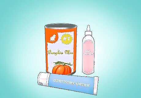 Stock the kit with pet-friendly medicines. Finally, add medicines for pain relief, itching, allergic reactions, and diarrhea or constipation. Talk to your vet to be sure what meds are pet safe. A cortisone spray or cream is good to stop itching from insect bites, for example. You can also keep cat laxatives or anti-diarrheal medication like Pet Pectate on hand. Just be sure that it doesn’t contain salicylates, a compound found in aspirin that is toxic to cats. Some people suggest keeping dehydrated or canned pumpkin mix in your kit, which will ease a cat’s constipation. Cats can safely consume allergy medication like Diphenhydramine (Benadryl). However, talk to your vet about proper dosages.