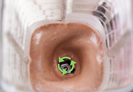 Close the blender, and blend until everything is smooth and evenly combined. There should be no lumps, clumps, streaks, or swirls. If the milkshake isn't blending smoothly enough, pause the blender, and use a spatula to scrape the ingredients down the sides. If you'd like some extra crunch, ad ¼ cup (45 grams) of mini chocolate chips in the last few seconds of blending.