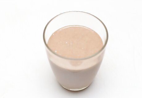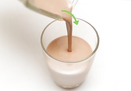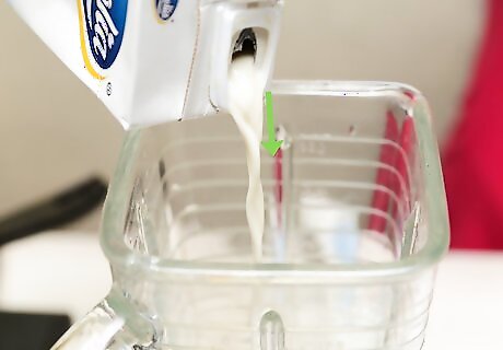 Pour in ¾ cup (180 milliliters) of milk. You can use any type of milk, but whole milk will give you a richer-tasting milkshake. If you like your milkshakes on the thin side, use up to 1 cup (240 milliliters) of milk. If you like your milkshakes on the thicker side, use only 1/3 cup (80 milliliters) of milk.