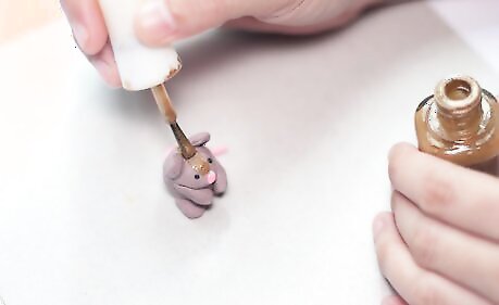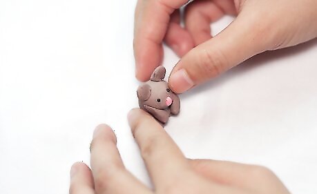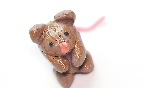 Get a light pink piece of clay (Or if you don't have a light pink, get a dark and mix it with the white piece) and make a thin tail out of it and also a little ball which is the nose and then place them onto the hamster's body.
