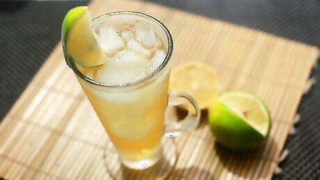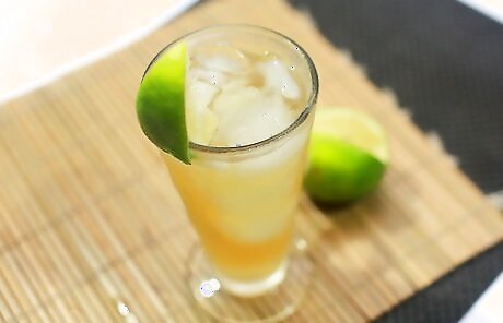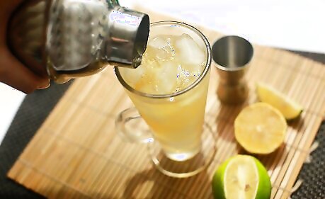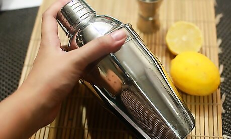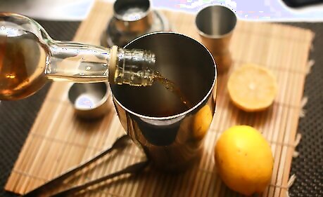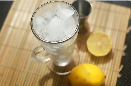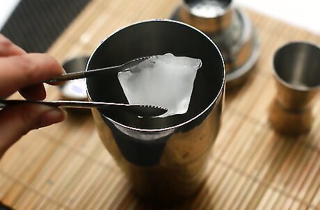 Fill the cocktail shaker halfway with the regular ice cubes.