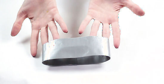 Stick the two pieces together. Flip over one of the pieces of tape, and press it down onto the other piece. Make sure that all edges are aligned. You should end up with a 6 inch (15.24 centimeter) long piece of duct tape that is smooth on both sides.