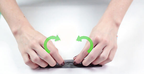 Fold the un-cut, narrow end of each tail, accordion style. Take a tail, and fold it in half, lengthwise. Bring the long sides down towards the fold and pinch them at the top; make sure that you are pinching the flat, un-cut end. It is okay if the rest of the tail is flat and not folded. One side of the tail will have a single folded edge. The other side of the tail will have two folded edges. Pay attention to this.