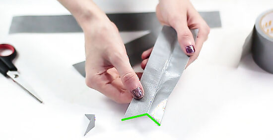 Take one strip and cut it in half to make the tails. Fold the strip in half, widthwise first, then cut along the fold with a pair of scissors. You should end up with two 2 by 6 inch (5.08 by 15.24 centimeters) pieces of duct tape.