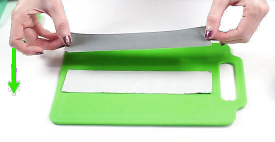 Fold both strips in half lengthwise, so you end up with a bundle of two 1 by 6 inch (2.54 by 15.24 centimeters) strips. Line the strips up together, with the folded edges on the same side. You will be cutting both at the same time in the next step.