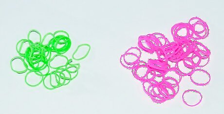 Decide on and separate your colors. Make a neat pile of the color you want your bracelet to be, or several piles of colors you want to use to make your bracelet. Having them available when you are weaving your bracelet will make the process go much faster.