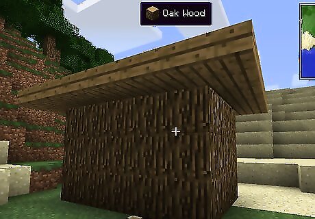 Make a frame, a 5x3x3 box of oak wood. Next, jump on top of the box and place a slab on the planks then extend the slabs around the box.