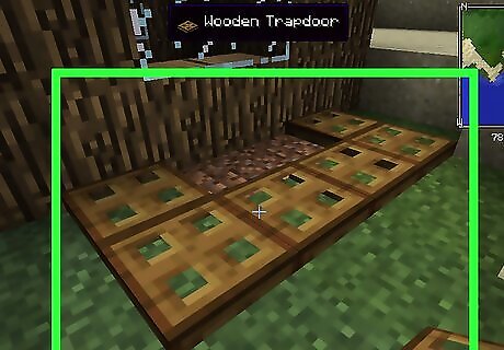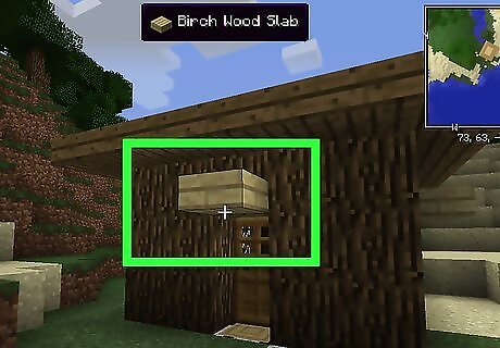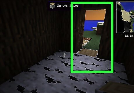Make a hole in the wall for a door, on the edge of the box, one block in on the left. Fill the floor of the box in with birch planks. Then place an oak door in the hole.