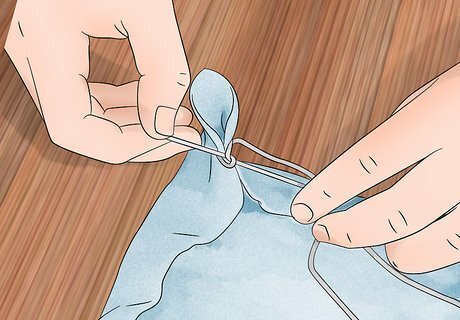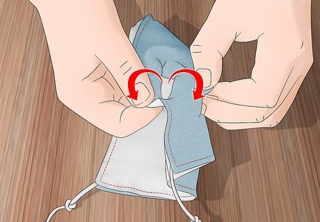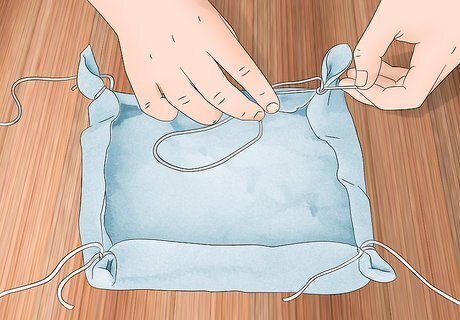 Fold a corner of the cloth and wrap it with string. Fold one corner of the cloth so that it comes to a point. Pinch the corner with your fingers to hold it in place, then wrap the piece of string around the corner and tie a tight knot so that the string is secured to the cloth.