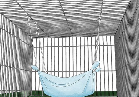 Tie the ends of the string to the top of your hamster cage. Tie the knots so that the hammock hangs down on the inside of the cage. If the hammock is too low to the bottom of the cage, undo the knots and tie them higher on the rope so that the hammock hangs higher. When you’re finished, you can cut the excess string on the top of your cage.