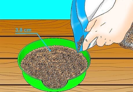 Fill the litter box with about 1.5 inches (3.8 cm) of substrate. This gives room for the hamster to nestle into the substrate and helps it to last longer. If you are using a loose substrate, such as shredded paper, pack it down into the container. If you are using sand as a substrate, sprinkle it loosely into the litter box. This makes it easier to remove when you want to clean out the litter box.