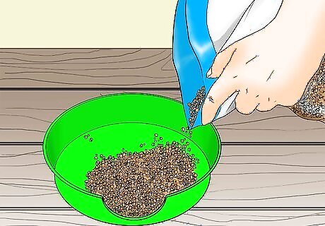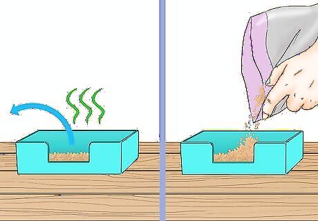 Change the litter every week. This keeps the litter box hygienic and ensures that it smells nice. Throw the old litter in the trash or compost, and then refill it with fresh litter. If the litter container is soiled when you take out the litter, take the opportunity to clean it with a cloth and soapy water. If the litter is smelling bad after only a few days, experiment with different types of litter.