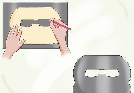 Create a template for the mouthpiece out of tracing paper. Wrap a piece of tracing paper over the front opening of your helmet. Trace the curved mouthpiece lines that you drew earlier on your neck guard onto the paper. Cut the paper along these curved lines. Make sure that the paper is the same height as the neck guard.