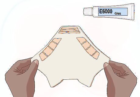 Cut and glue the plastic to the cardboard to complete the mouthpiece. Cut the plastic out, including the segments, using a craft blade. Glue it to the cardboard. An industrial strength glue will work the best here. Hot glue sets up too quickly and will create too much bulk.