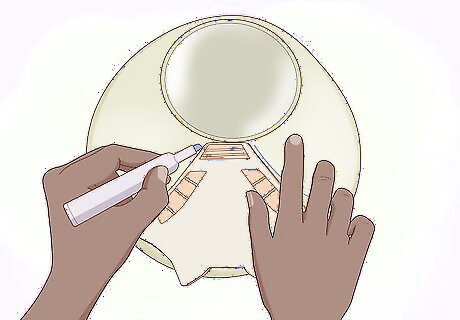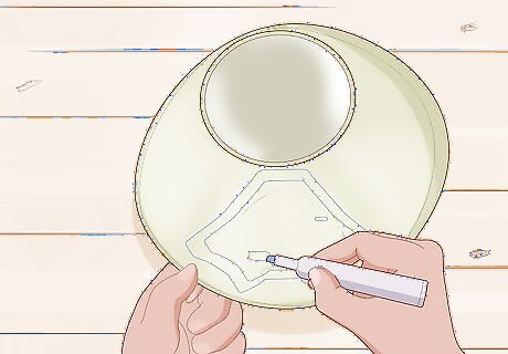 Trace the mouthpiece onto a round serving bowl. Choose a round serving bowl that is the same height as the mouthpiece cover. Trace around the mouthpiece with a permanent marker, then set it aside. This will eventually make the outer cover for your mouthpiece. Choose something with an rough texture. You can also use a sheet of thin plastic instead, but it may not give you the right look. If you are using thin plastic, consider scuffing the surface with sandpaper.