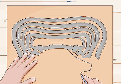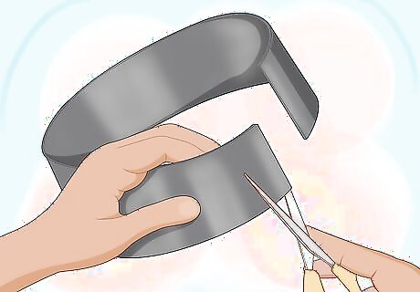 Trace the bottom of the neck guard onto cardboard to make the rim. Place your helmet down on a sheet of cardboard. Trace around the bottom edge of the neck guard to make a C-shape. Lift the helmet away, then trace 2 inches (5.1 cm) outside the C-shape. When you are done, you'll have a bold C-shape that is 2 inches (5.1 cm) thick. This will create a rim on the bottom part of the neck guard, and help create the correct angle for the taper. You can also use stiff plastic, craft foam, or poster board for this. Make the C-shape about 1 inch (2.5 cm) shorter on each side than the neck guard.