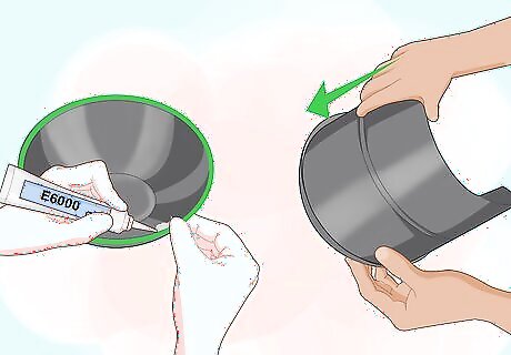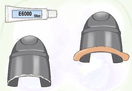 Glue the neck guard to the inside of the dome's rim. Hot glue will work fine here, but if you want something more durable, use an industrial strength glue instead, such as E6000. Let the glue set before moving on. If you are using a domed trashcan lid, make sure that the U-shaped part of the flap is in the front. The opening between the 2 vertical edges of the neck guard needs to span the width of your forehead. Test the fit and trim it if needed before you glue.