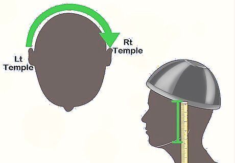 Put the dome on and take your measurements for the neck guard. Measure around the dome's rim, from your left temple, around the back of your head, and to your right temple. Next, measure from the dome's rim down to your jaw.