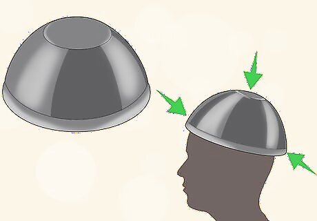 Find a plastic dome big enough to fit on your head like a cap. A small, plastic trashcan with a domed lid will work the best; take the lid off and save the can part for later. A plastic bowl with a rounded top may also work. The dome must have a similar circumference to your own head, otherwise it will look too clunky. The rim of the dome should sit above your ears. If you are using a plastic trashcan lid, secure the lid from the inside with black duct tape so that it doesn't flap around.