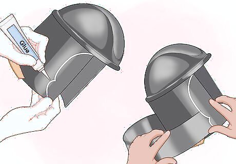 Glue the craft foam mouthpiece base to the helmet. Make sure that the curved side edges of the mouthpiece match up with the curved lines that you drew on the neck guard. An industrial strength glue will work the best for this step; the mouthpiece needs to be secure.