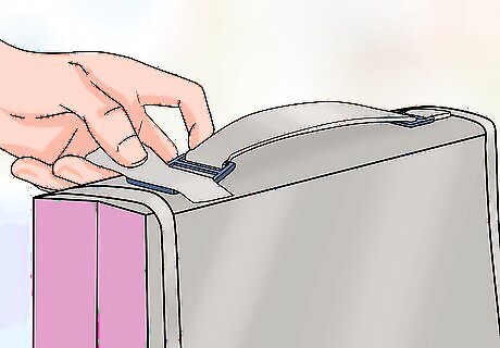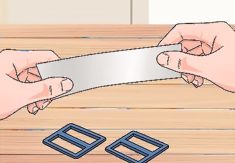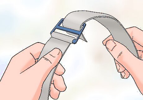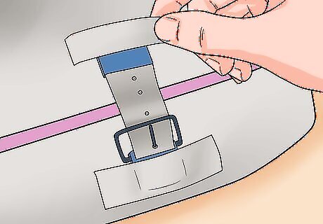 Attach the buckle. Attach the buckle to the bottom of the bag on the front side, using the same method as for the shoulder strap anchors. You will need to make two holes for the buckle pins.