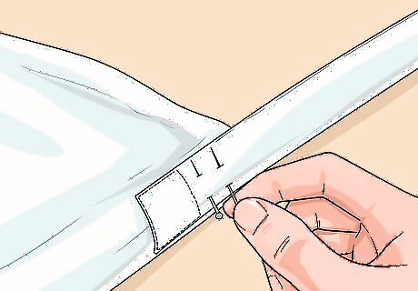Pin the strap. Pin the ends of the straps to the pillowcase you are using as the main section of the bag such that the zipper is open and at the top and the side seams align with the center of strap. The straps should be placed far enough down so that the folded in 3” section is entirely on the bag.