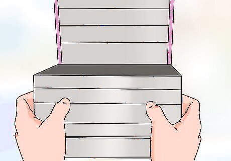 Fold into a bag. Unpin this completed piece and fold it into a bag. The side panels form the narrow sides of the bag, with the section directly between them forming the back side of the bag. The section directly below forms the bottom and front of the bag (and should fold up to align the bottom edge with the top of the side panels). The remaining top section forms the top and front flap of the bag. The result should be a box-shaped bag with clean edges.
