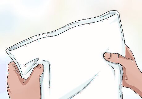 Get pillowcases. You will need three ~16” square pillowcases. These should be made of heavy upholstery fabric, in the same or matching prints or colors, and include a zipper opening. One pillowcase will form the outside of the bag, one will form the inner lining, and the other will form the strap.