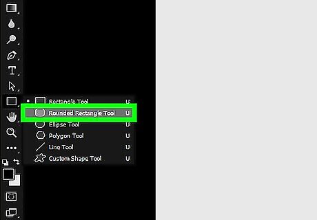 Use three or four different colored and sized circles or rectangles to create a shape. Make sure that the rectangles you use are rounded rectangles, as hard lines in a logo do not look professional. Select the Rectangle tool. Click on this tool and hold it until a window pops up with different tools that can be selected. Choose either the circle tool or the rectangle tool and draw different shapes, making sure that you add a new layer between each shape, or else you will get a solid that has colors that can't be changed.