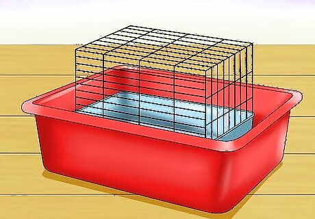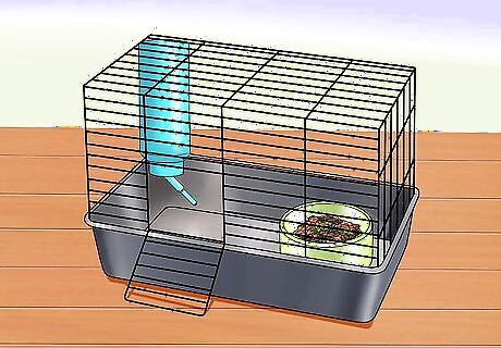 Hamster-proof the cage as well. Hamsters can chew through plastic cage bars, and sometimes can open the doors of a cheap model. A glass or plastic reptile tank with a mesh top could be a good alternative. If you are using a cage, consider placing it inside a large plastic tub.