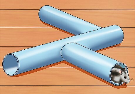Provide hamster toys. Give the hamster some safe objects to play with, and some tunnels or structures to run around in and hide. You can easily make your own toys out of cardboard tubes and boxes. You can even make your own hamster mansion!