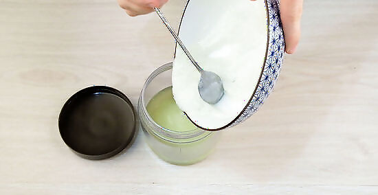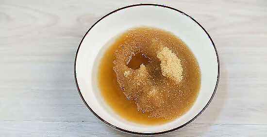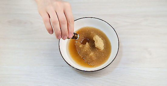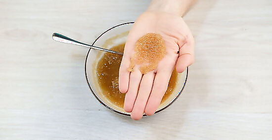 Place the brown sugar and coconut oil into a bowl. Get regular brown sugar that you use for cooking and softened coconut oil. Then use a measuring cup to measure out 1 cup (200 g) of brown sugar and 1/2 cup coconut oil (105 g). Place both of the ingredients into a bowl. Sugar is great for soft or delicate skin. Alternatively, you can use granulated sugar instead of brown sugar. Coconut oil is great for hydrating your skin. However, you can also use olive or grapeseed oil instead.