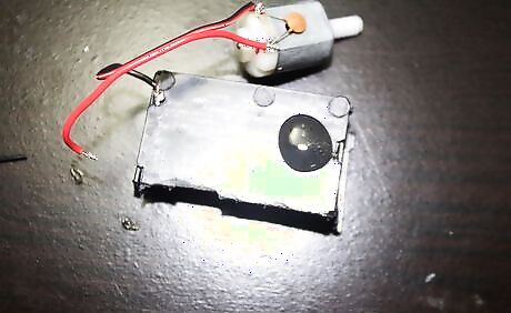 Hot glue the motor to the battery holder. Hot glue the motor on top of the battery holder. Attach the battery holder's wires to the motor pins.