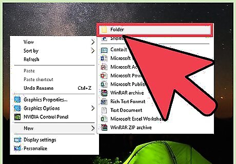 Right-click on your desktop, then select "New" and click "Folder". This will create a new, empty folder on your desktop.