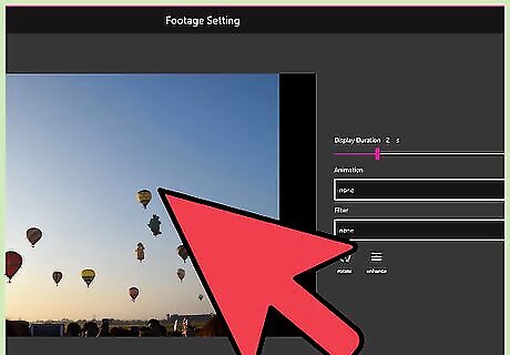 Click a photo you wish to edit once to select it, then again to open it. You can change settings such as lighting, color, the photo's default animation, and the display duration from here. You can repeat this process for every photo in the slideshow.