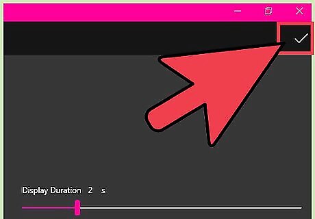 Click and drag the green slider at the bottom of the screen. This will adjust the amount of time your text remains on the screen.