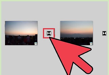 Click the black and white box between your first two photos to edit the transition. This will determine which effect, if any, displays while transferring from your first photo to your second. You can repeat this process for every transition in the slide show.