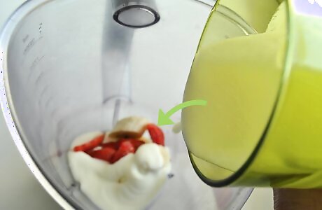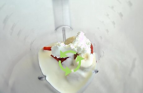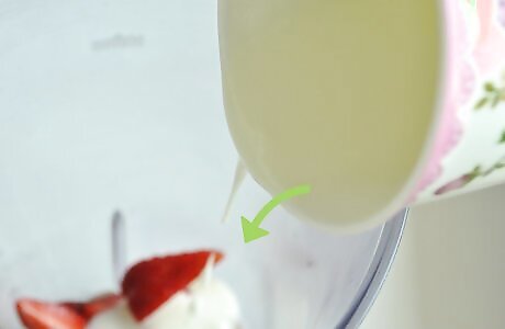 Add the ice cream. Strawberry ice cream or vanilla ice cream are popular choices, but you can also try chocolate ice cream instead for a tasty twist. If you'd like a healthier milkshake, try frozen yogurt instead.