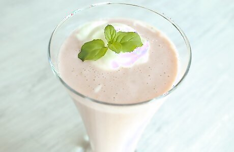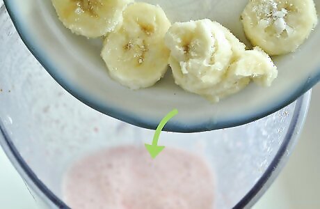 Add the milk. You can use any type of milk you want for this. If you want a more traditional milkshake, use 2% or whole milk. If you are looking for a vegan option, you could try almond milk or even fat-free coconut milk!