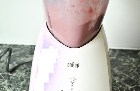 Blend the strawberries and milk together for about 30 seconds. This will create the base for your milkshake, and will give you a smoother treat in the end.