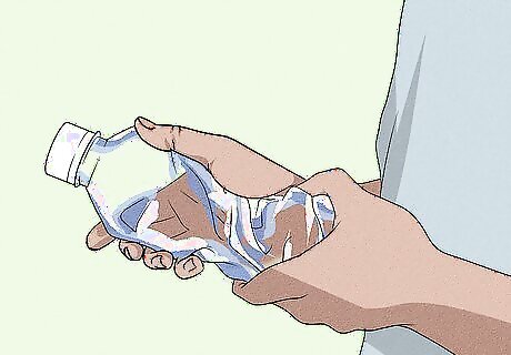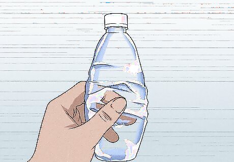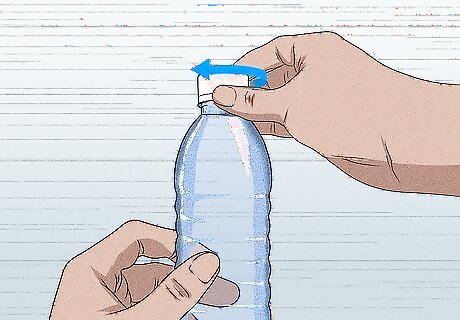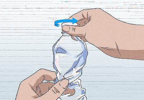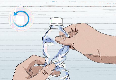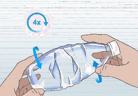 Squeeze the bottle in the middle and twist. In order to build up the air pressure inside the bottle, you need to decrease the amount of space available by crushing the bottle. Start by squeezing the middle of the bottle and twist the bottom. Starting the twist can be difficult. In some cases it can be easier if the bottle starts out slightly deflated. Remove the cap, squeeze the bottle a bit and replace the cap while keeping the bottle slightly squished. Make sure the cap is tightly screwed on to the top of the bottle before beginning this step.