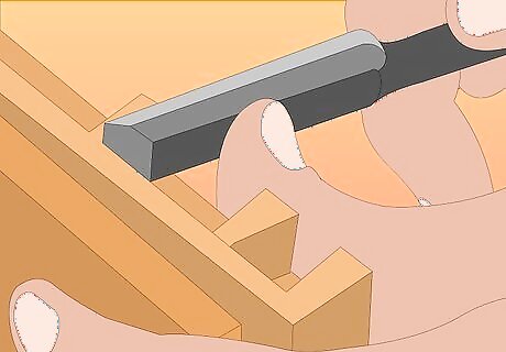 Chisel to the scribe line as accurately as you can. Part 2Make a Wooden Cabinet with Dovetail Joints Step 22Bullet1.jpg