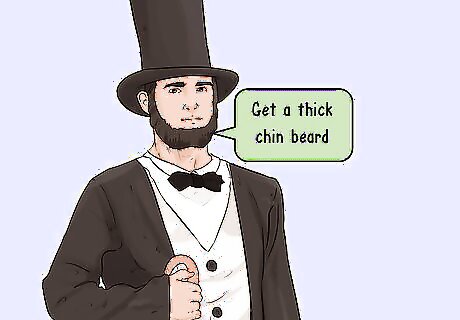Get a thick chin beard. Lincoln's beard was arguably his most distinctive attribute. His beard was based around the chin and allowed to grow quite bushy, without hiding his shirt collar. Look at pictures of Lincoln's beard and groom your facial hair to match this. You can also make a fake beard with construction paper or brown felt. Use spirit gum to attach it to your face. Although he's remembered for his beard, there were points in his life where Abraham Lincoln shaved his beard. A woman named Grace Bedell convinced him to grow it out. This had the effect of making Lincoln look more trustworthy and warm.