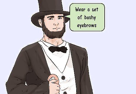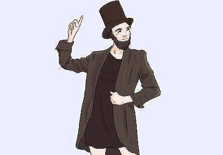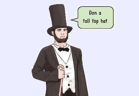 Don a tall top hat. Lincoln's look is associated with fancy clothes and a big top hat. Top hats can be found at costume or consignment stores, or made by rolling black felt and gluing on a rim. Provided you're aiming for a traditional Lincoln costume, you should keep the hat black. Top hats often come with pre-fabricated Lincoln costumes.